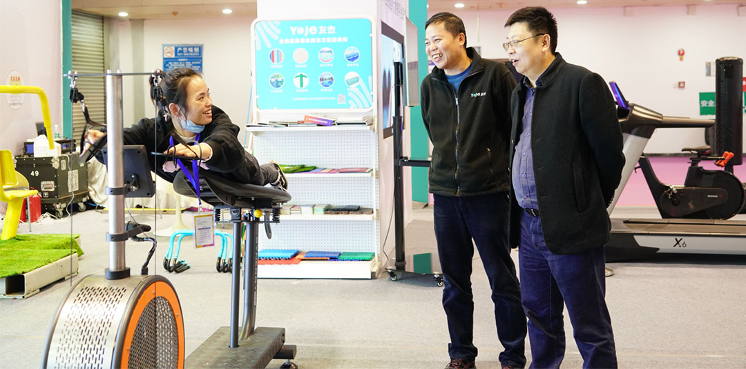 重慶友杰一直致力于推動全民健身運動,在這次展會上,我們也帶來了舒華最新的智能健身路徑。全套產品采用太陽能,不僅節能環保,還能實時監測使用者的鍛煉次數以及使用情況。這一系列產品也是深受各界領導群眾的喜愛,相信用不了多長時間,廣大市民都能用到這樣先進的產品。